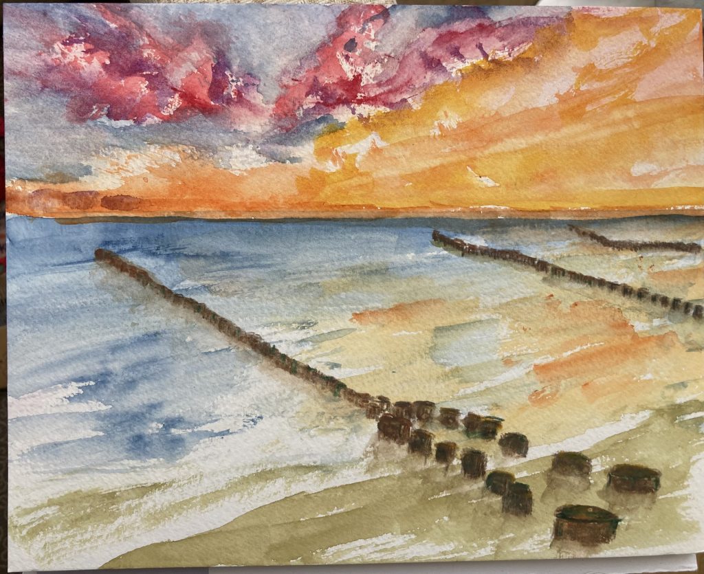 Für mich ist das Malen mit Aquarellfarbe die schwerste, aber auch spannenste und schönste Art Bilder entstehen zu lassen. Die Farbe und das Papier sind mit mir zusammen Künstler, die zum Teil zufällig und zum Teil gesteuert zarte Kompositionen entstehen lassen. Allerdings liebe ich kräftige Farben, weshalb meine Aquarelle oft wenig weiß, dafür aber mehr Pigmente haben.